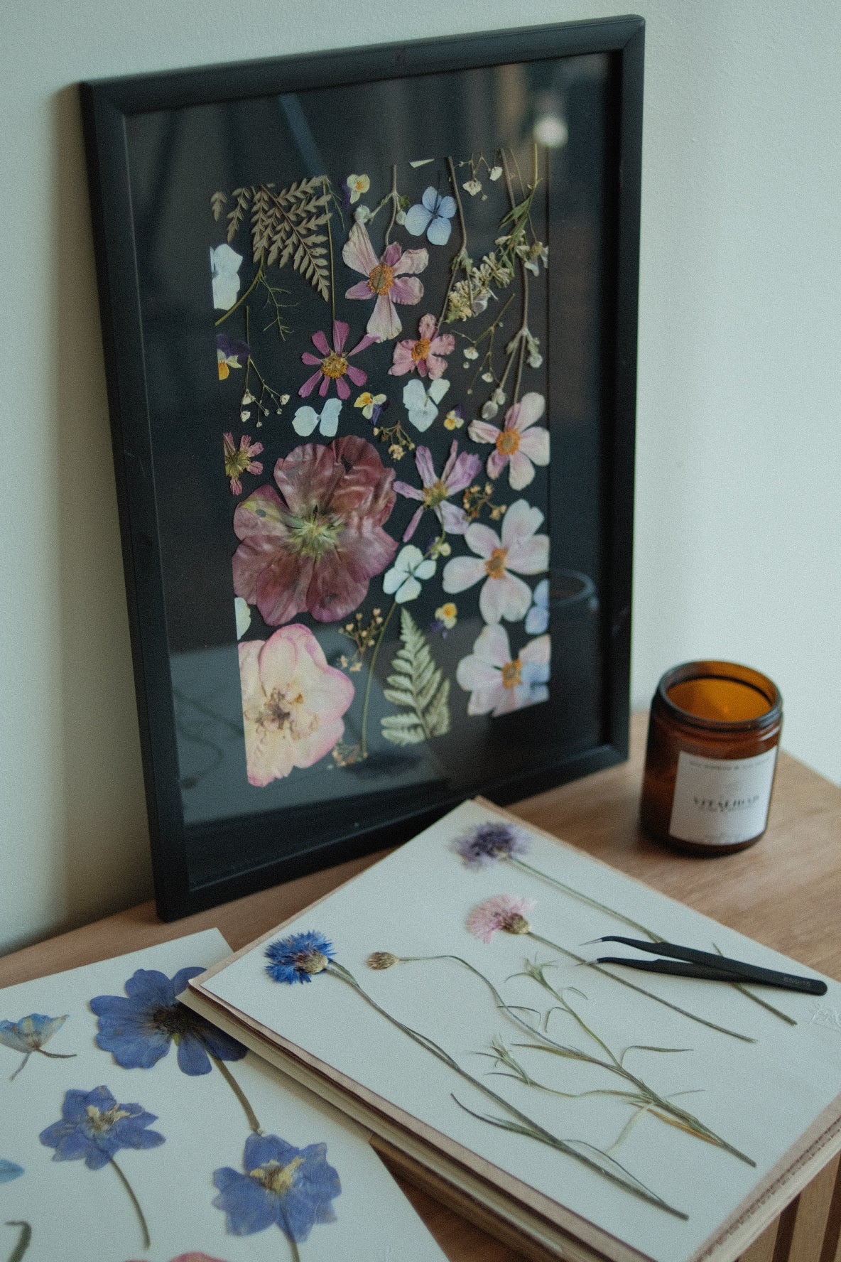 El prensado botánico o prensado floral, es el arte de capturar la belleza de las flores y plantas, de una manera única y encantadora. Consiste en preservar flores, hojas y otros elementos botánicos en papel, con las cuales puedes crear increíbles composiciones, atemporales, que pueden adornar tu hogar o cualquier espacio donde busques inspirarte.